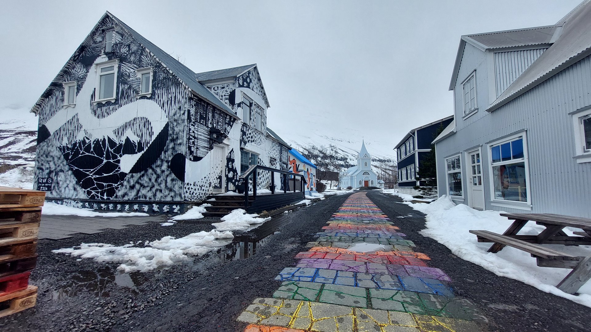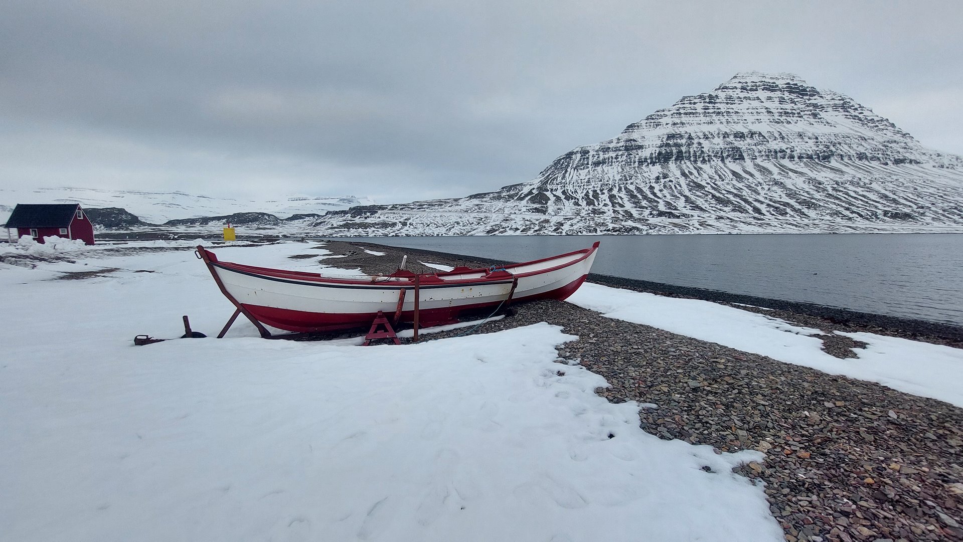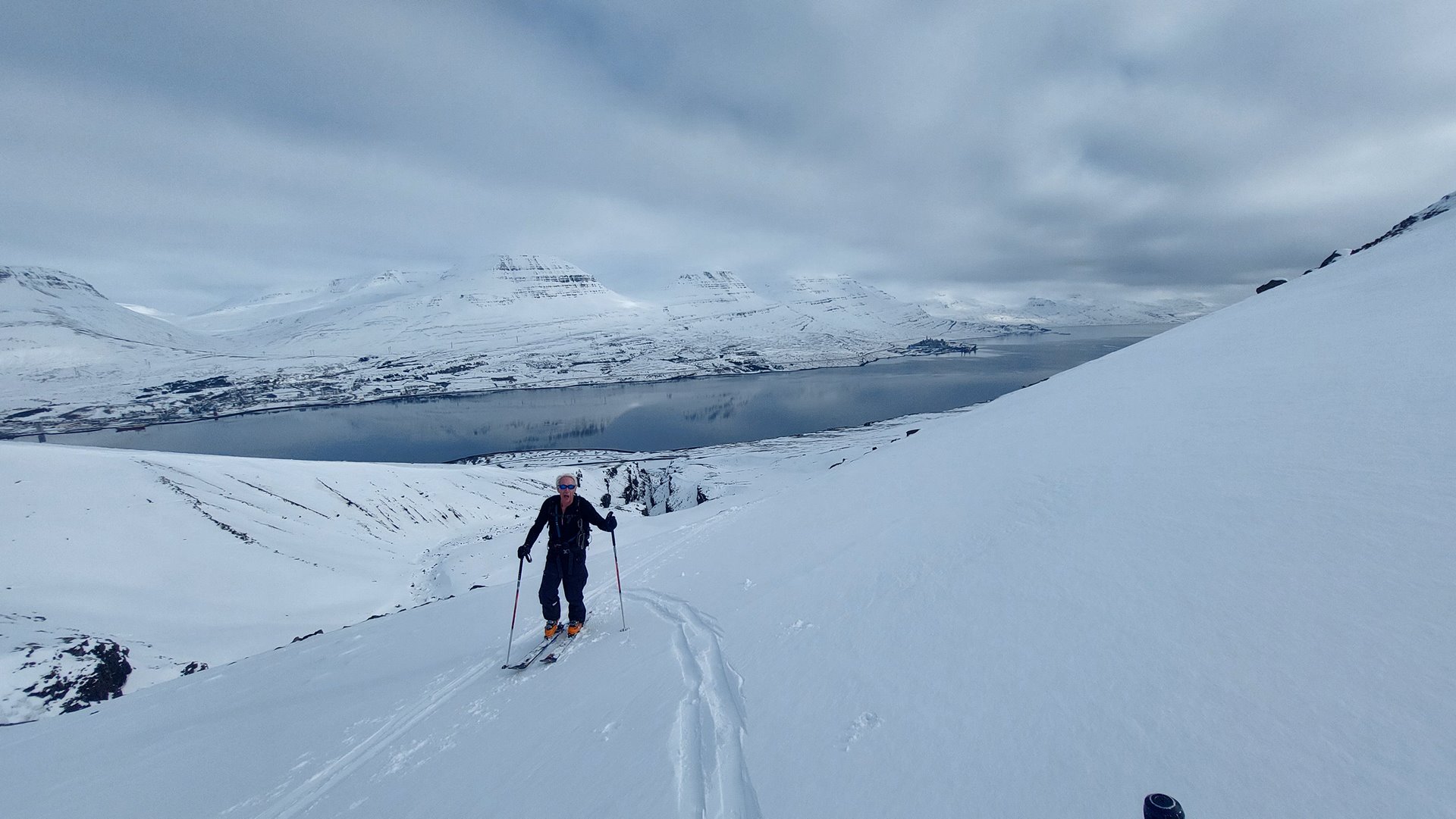 In April 2024, we embarked on another ski trip to Iceland, this time to the remote East Fjords. This region is surrounded by numerous small fjords and many mountains. The East Fjords are home to some villages among the first settled by the Vikings. The experience of a ski trip in Iceland is as unique as the country itself—a land of impressive geological formations and truly “living” nature. The volcanic activity, still active to this day, shapes and creates the land of Iceland. During the snow-covered months, two colors dominate: the white of the snow and the black of the volcanic rocks, beaches, and the sea, which has a dark, leaden hue, reminiscent of a film noir setting. Only the vibrant burgundy and other colors of the houses and villages stand out amidst the black and white landscape!